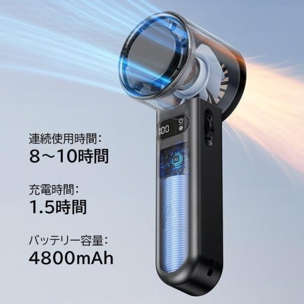 【2025最新】卓上&手持ちハンディファン 小型扇風機 可愛い おしゃれ 100段階風量 USB充電式 静音設計 軽量 携帯便利 熱中症対策 節電グッズ アウトドア・キャンプ・旅行に最適(ダークグレー)